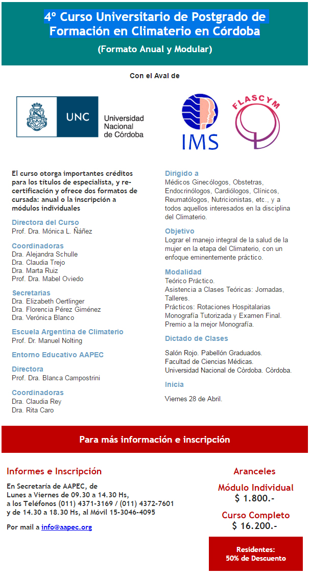 4º Curso Universitario de Postgrado de Formación en Climaterio en Córdoba